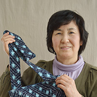 お姉さんの登美子さんと一緒に来てくれています。とても丁寧な針目で刺し子をしてくださいます。ガーデニングが好きで、お庭をいつも綺麗に手入れしているそうです。優しい笑顔がかわいらしい刺し子さんです。
