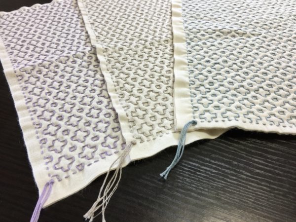 刺し子さんが丁寧に刺し子したみやびふきん、完成までもう少しかかりそうですが