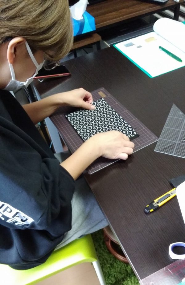 丁寧に寸法を測りながら裁断しました。