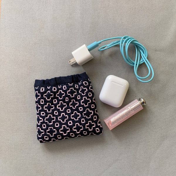 バネ口仕様のギャザーポーチ。
