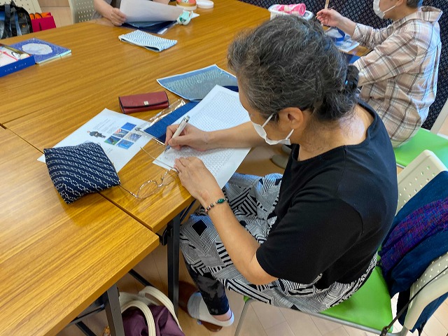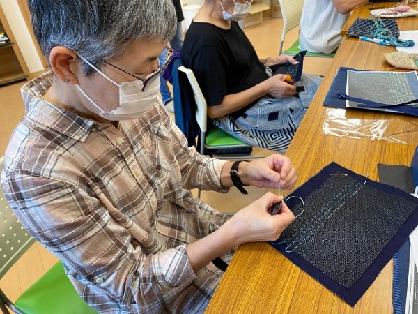 コロナの影響で外出を控えていたこの時期、この講習会をとても楽しみにしていた新人の刺し子さんがいて、ちょっと緊張気味でしたが、周りの刺し子さんと一緒に楽しみながら作業していたようでした。