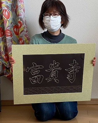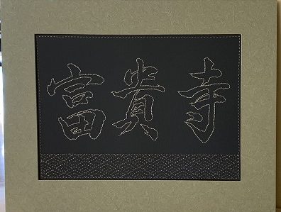 数年前から富貴寺の御守に、岩手県大槌町の女性達で作って頂いている刺子御守りを置いています。東日本大地震の際、避難所の女性たちに少しでも生きる希望を持ってもらいたい、との思いから認定NPO法人テラルネッサンスさんが大槌復興刺し子プロジェクトを始められ、その主旨に共感し、ご無理を言って富貴寺の御守り袋も作って頂いております。伝統柄を一つ一つ手仕事で刺して下さる、とても心のこもった御守り袋です。10年間の活動を記念して額に入れた富貴寺の刺子を奉納頂きました。今後ともテラ・ルネッサンス様、大槌プロジェクト様のご発展、皆様の御健勝を心よりご祈念申し上げます。