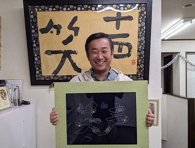 まさかこんな素晴らしい作品を送ってくださるなんて。めちゃめちゃ感動しました。会長、社員さんもとても喜んでます。あらためて、仮設住宅で、刺し子をさせていただいたときのことや、仲間と、大槌に行って吉田さんにお話伺ったときのことを思いだしました
